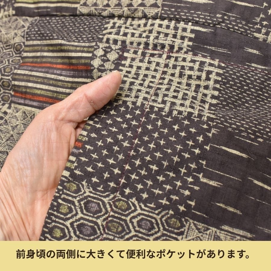 ・表地:綿100%(大島紬風寄せ柄プリント)