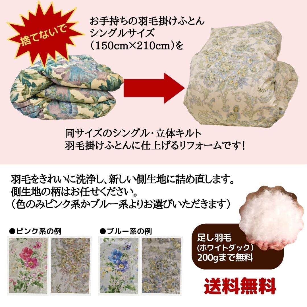 羽毛ふとんリフォーム 柄おまかせ(スタンダード)コース/ S→S(シングル)